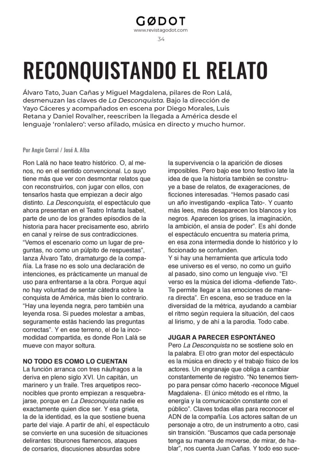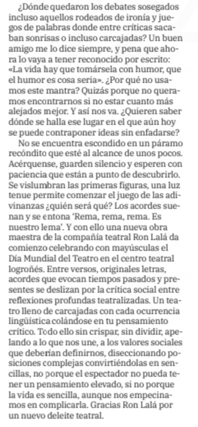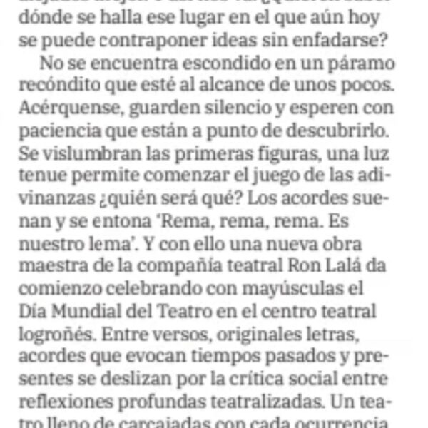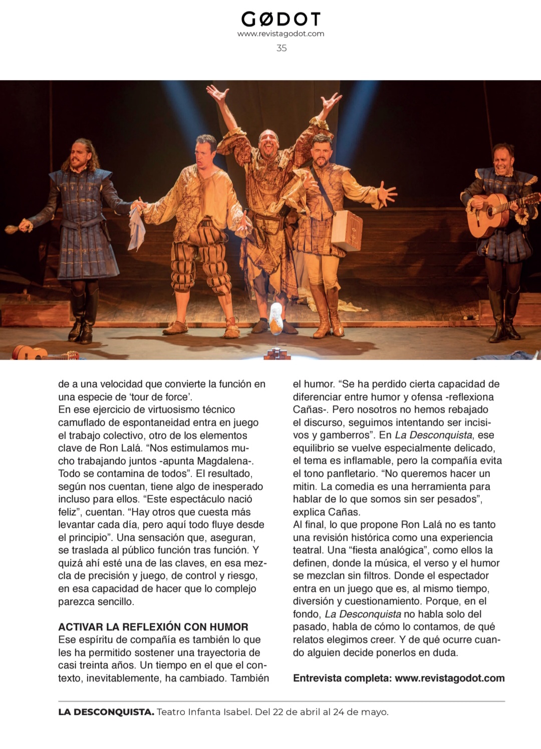 Una fiesta escénica y musical que gira en torno a las ambiciones, obsesiones, miedos y angustias del Imperio donde no se ponía el sol, en su afán de conquista y en su pasmo ante la nueva realidad de un continente aún desconocido. Una visión mordaz y delirante con textos y música originales, humor vertiginoso, poesía escénica y un quinteto de comediantes inimitables. ¡Ron Lalá se lanza a la Desconquista!
